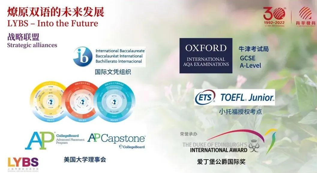 燎原与加拿大哥伦比亚国际学院(CIC)、美国百年名校伍德斯托克学校合作多年,拥有牛津AQA考试局认证、美国大学理事会认证、爱丁堡公爵国际奖认证、小托福考试授权考点等战略合作,是上海市资质最全的国际高中之一。