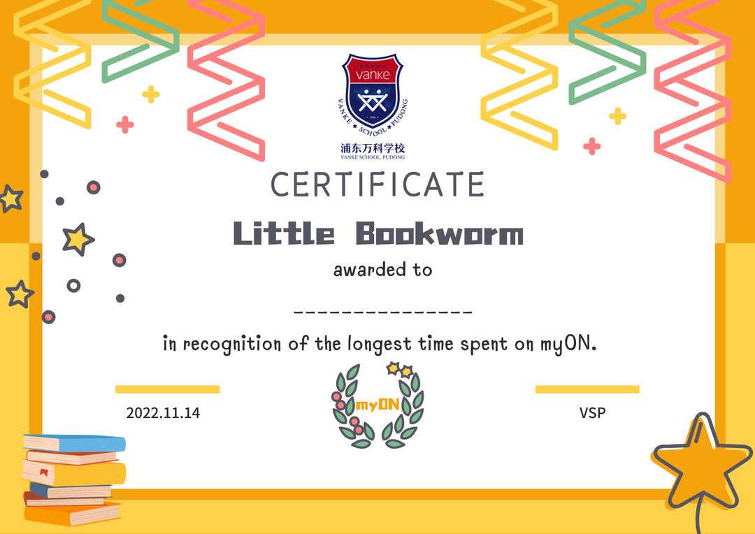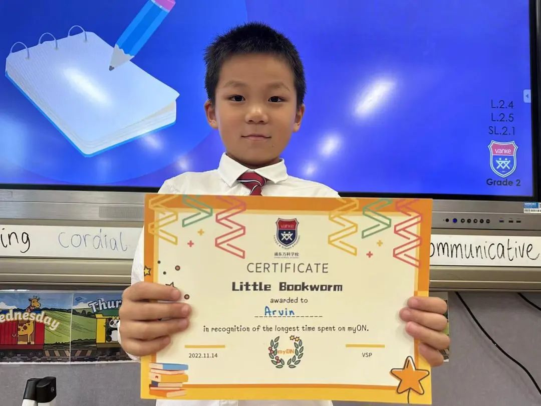 秋天是收获的季节,本学期起,VSP启用myON作为课后阅读平台,除了老师布置的阅读任务,学生还可自主阅读。在经过一个多月的myON线上阅读学习之后,小学各班评选出了10月上海浦东新区民办万科学校阅读之星~同学们已累计阅读打卡4162小时,阅读书籍达到16440本!Well done 。