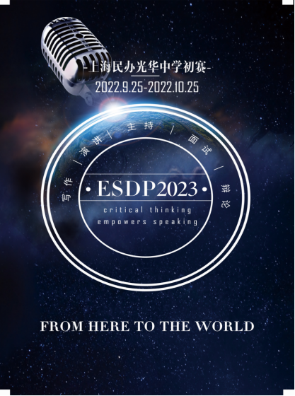 2022年9月25日至10月25日,上海民办光华中学六七八年级组ESDP2023演讲初赛在我校行知楼隆重举行。