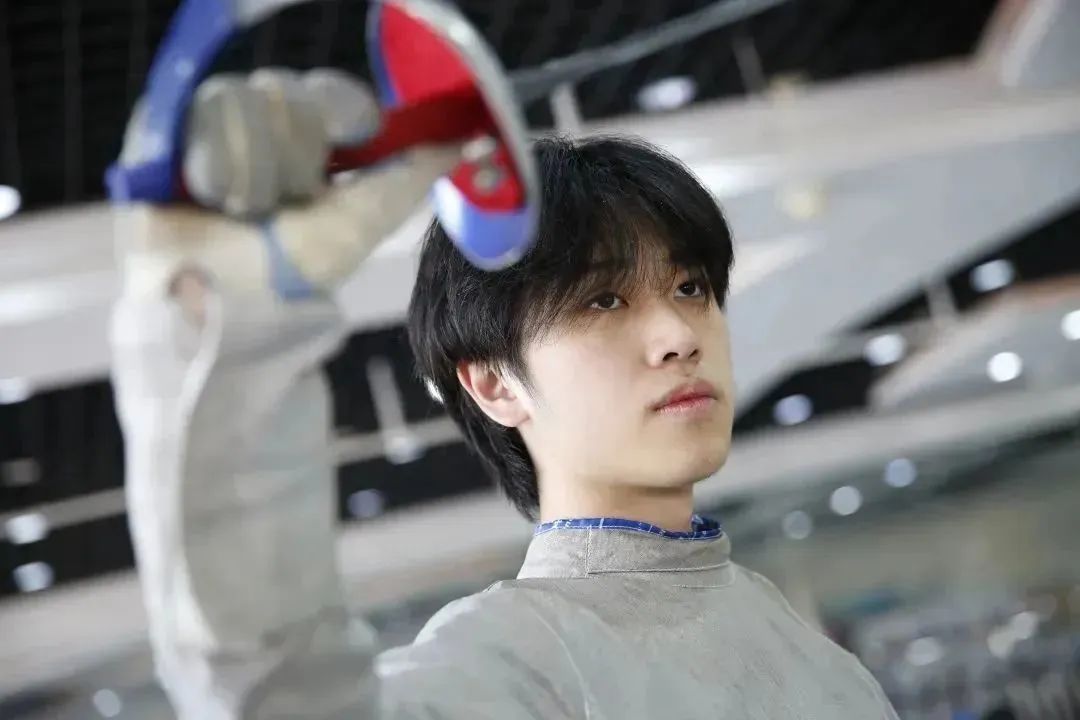 嘈杂的运动馆中,因快速的出剑而产生的“咻咻”声很快就被淹没。同样瞬间消失的,还有他额头与眉间滴落的汗珠。