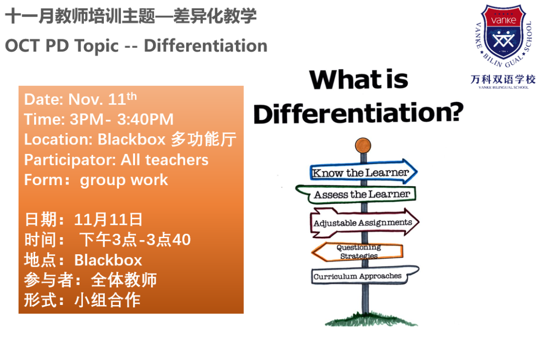 上海闵行区万科双语学校差异化教学主题研讨活动。世上没有两片完全相同的树叶。正因为没有两片完全相同的树叶,我们的世界才如此精彩。