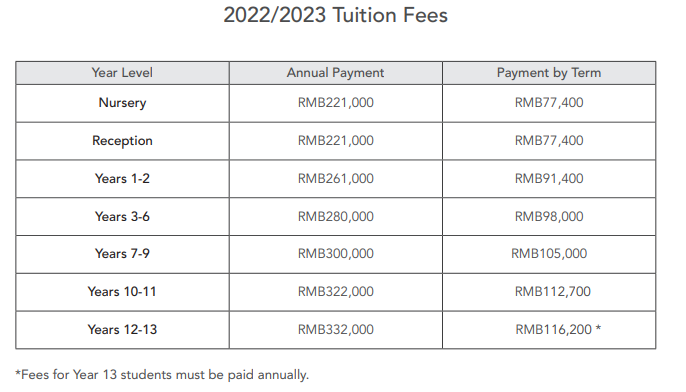 北京德威英国国际学校是一所具有英国德威公学背景关系的外籍子女国际学校,学校被称为北京地区国际学校的标杆。所培养的毕业生主要流向英国G5,美国名校。北京德威从幼儿园到高中仅学费一年最高可达33万元,各年级学费标准如下: