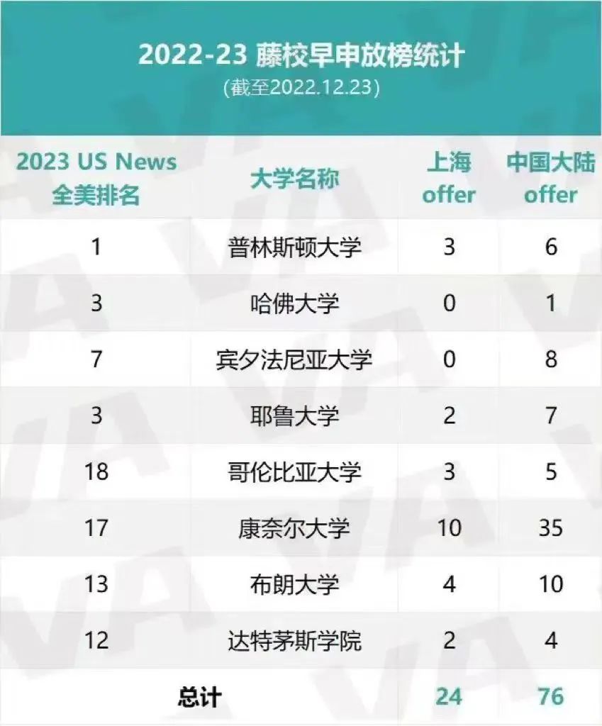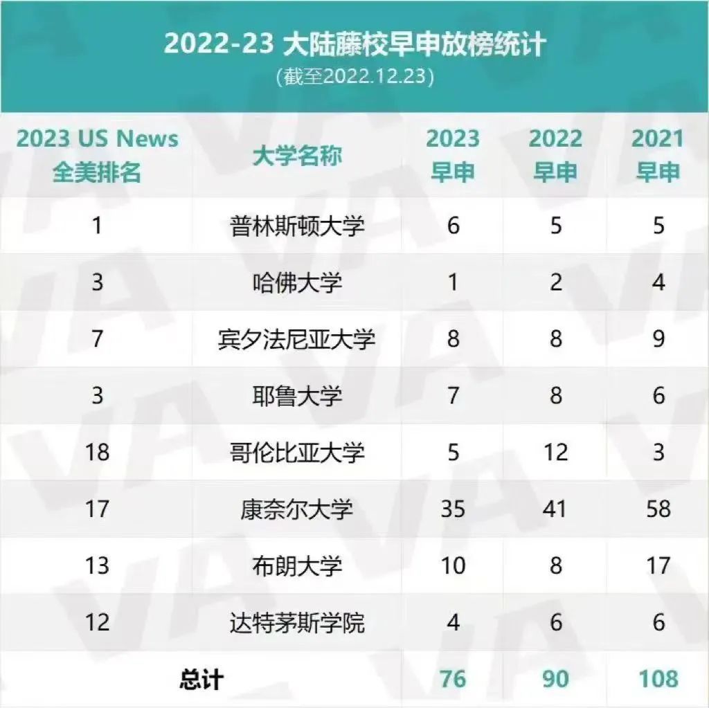 ▲2022-23 大陆藤校早申放榜统计;数据来自:择校鹿