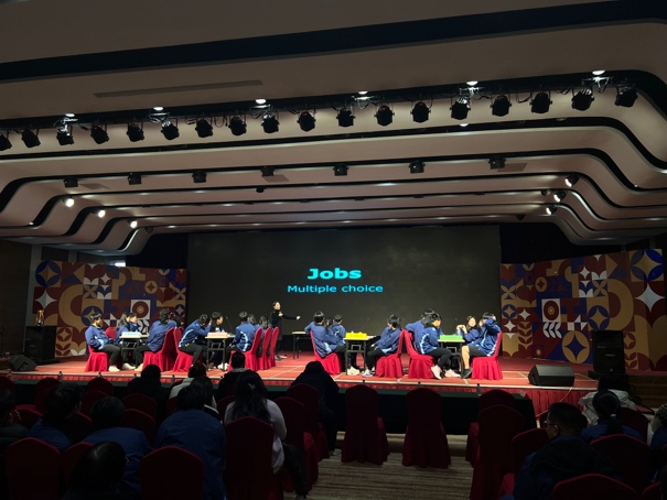 比赛过程中穿插着两轮观众互动环节,给未能参与决赛角逐的同学在互动环节中积极表现、踊跃答题的机会。此外,9年级和11年级学生分别带来了《Dance Number》舞蹈表演和《Lemon tree》弹唱表演,为决赛现场平添别样的活力。