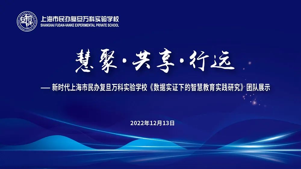 2022年12月13日下午,上海市民办中小学中青年优秀教师团队发展计划项目《数据实证下的智慧教育实践研究》团队展示活动在上海市民办复旦万科实验学校顺利举行。