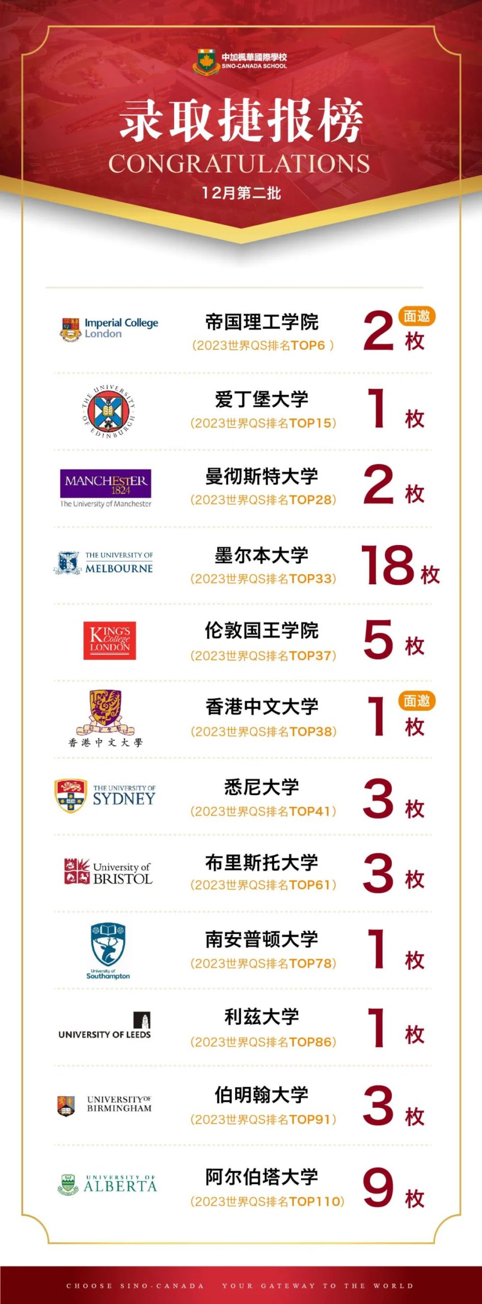 12月中加枫华国际学校offer捷报,更多惊喜尚在路上……