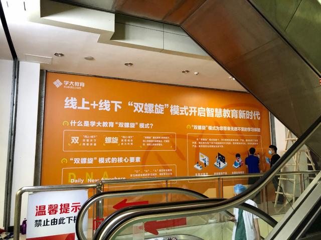 位于海淀文化艺术大厦2层的学大教育门前,崭新的巨幅宣传海报正在张贴中。“就像这上面所说,我们继续要坚持的依然是线上加线下‘双螺旋’模式,通过深度融合,打通空间、时间上的教学壁垒。”工作人员表示,机构从2017年便开始尝试的这种模式在疫情期间发挥很大作用。
