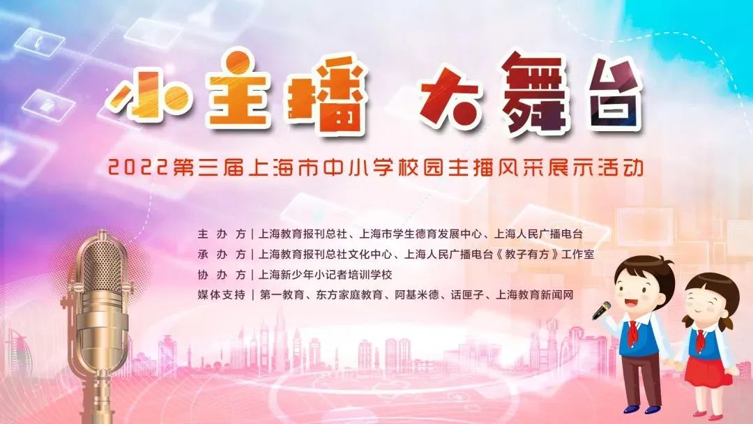 上海市中小学校园主播风采展示活动由上海教育报刊总社、上海市学生德育发展中心和上海人民广播电台主办,是一年一度上海教育博览会校园文化展示的重要活动。本次活动在全市中小学(中职)近200所学校、近300个作品中,筛选出了18个优秀作品进入线上展示阶段。结合专家评选和线上点赞,最终评选出优秀组织奖、最佳展示奖等多个奖项。