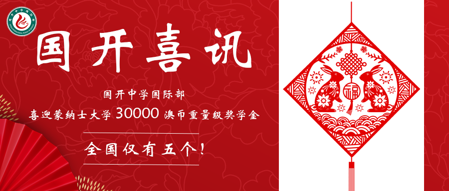 国开中学国际部喜迎蒙纳士大学三万澳币重量级奖学金。