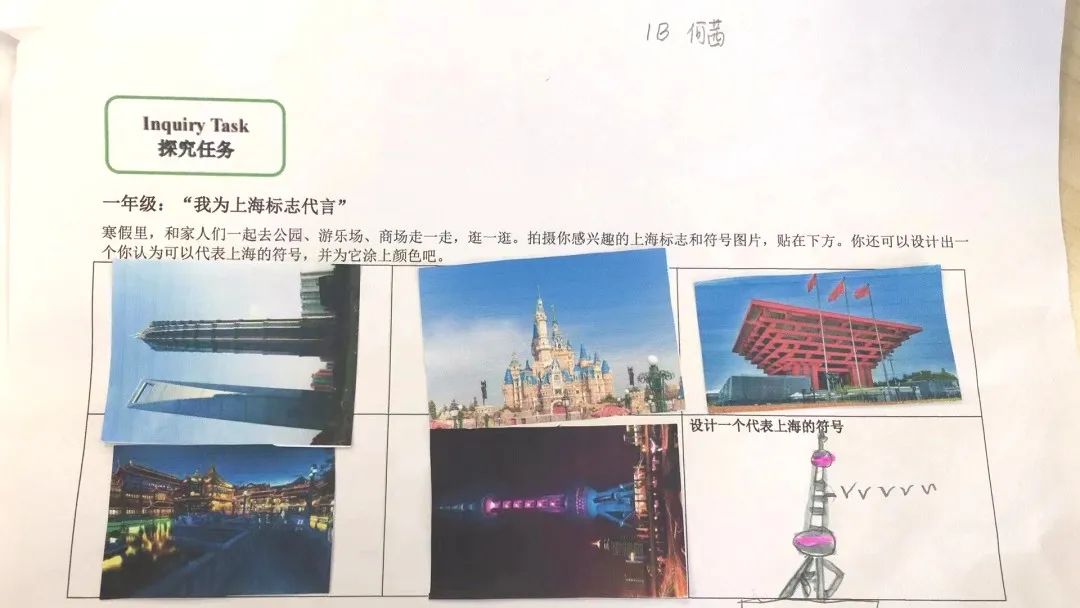这次探究式作业以“文化是人们进行自我表达的形式之一”为中心思想。每个年级学生都根据不同的探究线索去探究上海的文化和历史,完成了探究的寒假作业。
