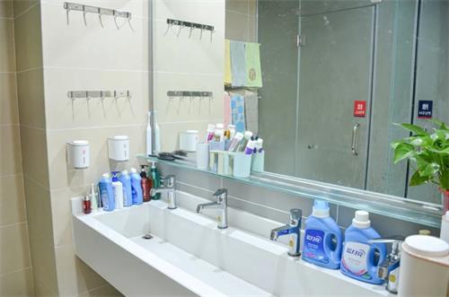 寝室为4人间,装置4个水龙头,减少排队洗漱时间。