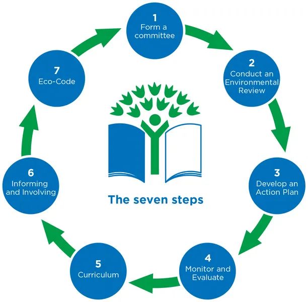 七德生态委员会是基于世界环境教育基金会(Foundations for Environmental Education)所提出的国际生态学校Eco-Schools规章所运行的。在委员会初创成员完成本学期新成员面试后,于9月30日召开第一次成员大会。会长高歌为大家详细介绍了“七步法”工作内容,同时由来自12A的陈昕媛Kennis带领成员们深入七德校园,对一系列可持续性问题进行评审。