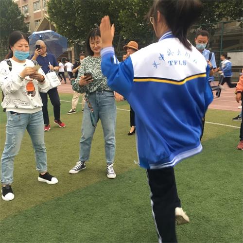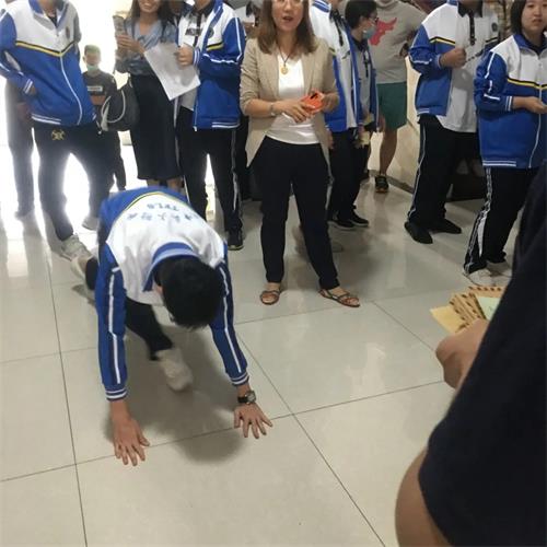 但让大家特别开心的是下午的天津外国语大学附属外国语学校升学指导课程是在操场上玩游戏:“藤校争霸赛”: