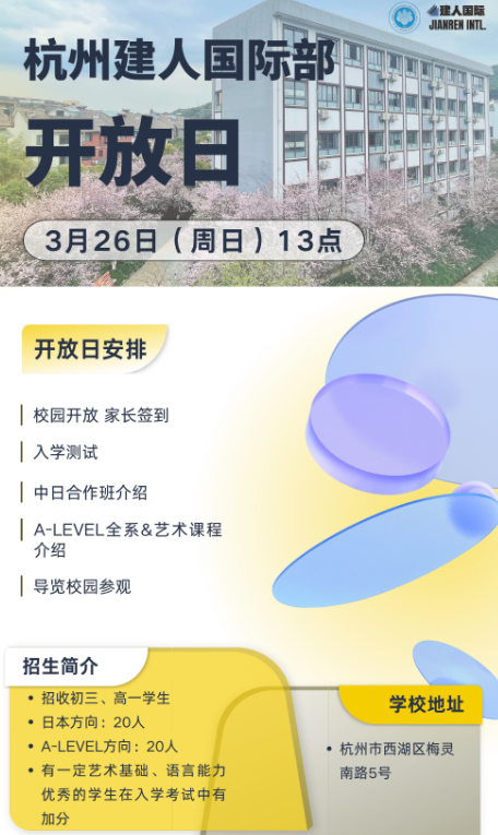 2023年03月26日 杭州建人国际部开放日免费预约开启