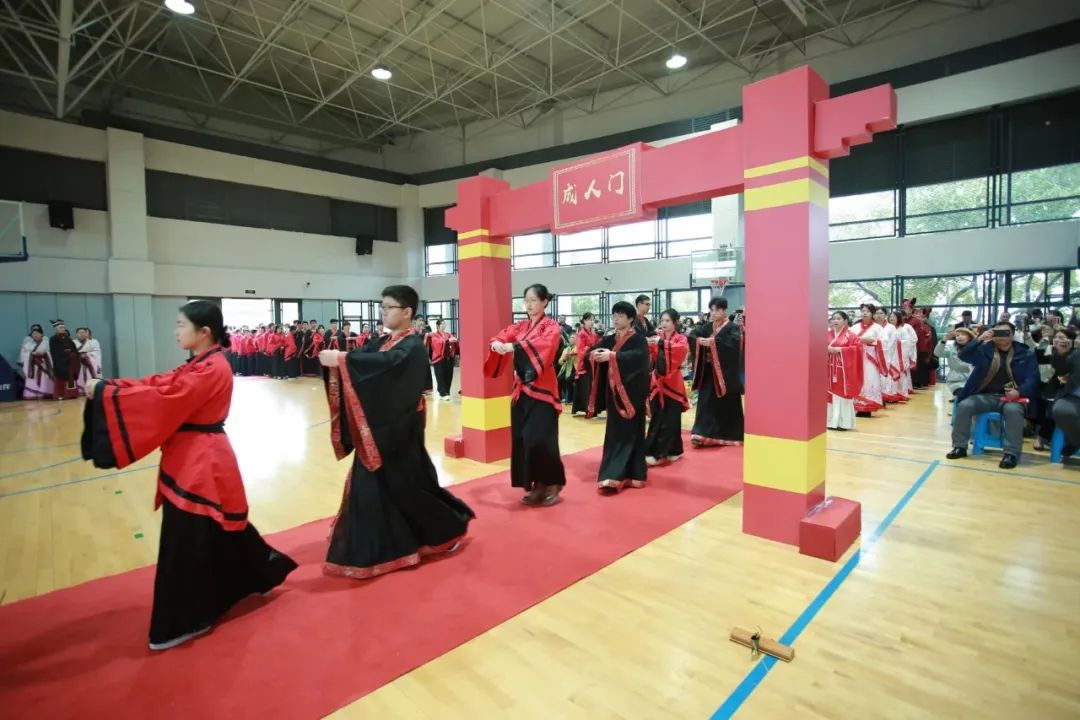 典雅太古的琴声响起,高三学子在赞礼官的指引下依次跨越成人门,进入内场。学生们步履沉著而从容笃实,神情庄重而焕发光彩,今天,是属于他们的成人节日。