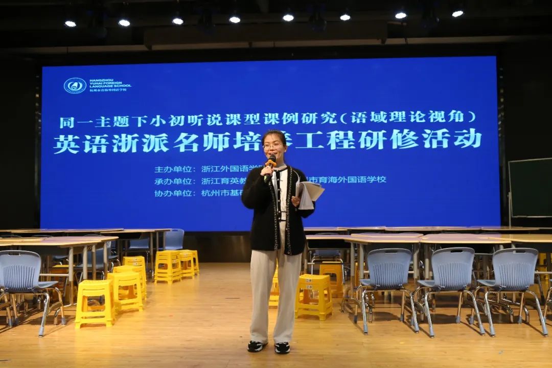 近日,杭州市育海外国语学校星光熠熠,因为2023年浙派名师小学、初中英语班“同一主题下小初听说课型课例研究(语域理论视角)”集中研修活动在这里拉开帷幕。本次活动迎来了来自区内外的一百余位小学、初中英语教师观摩,时间持续两天半,上课名师和点评嘉宾陈容强大,实为一场“教学盛宴”!