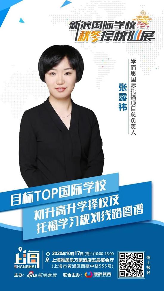 托福项目总负责人张露祎将参加“新浪2020国际学校秋冬择校巡展”
