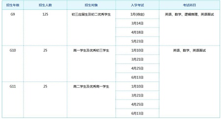 ULC招收G9、G10和G11年级新生,不招收插班生和G12年级新生(国际学生除外)。