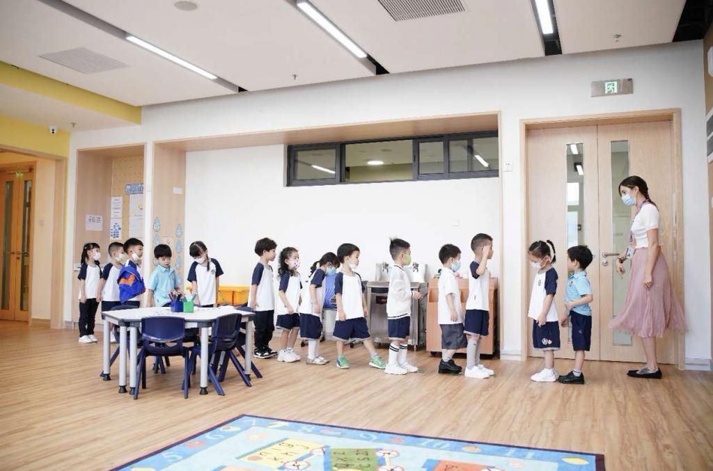 据了解,学校开学第一天旨在帮助孩子尽快适应学校的学习生活,同时帮助家长了解学校规章制度和沟通方式。在各年级助教老师的组织和带领下, 学生们排好队走向各自的班级。老师给同学们颁发了入学证书和极具纪念性的开学礼物,带领学生到校园参观,帮助大家熟悉和适应学校环境,并开启了新学期第一天的线下授课。