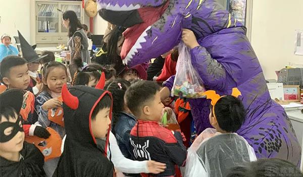 走秀结束,小宝贝们最期待的环节来啦,在老师的带领下,他们前往各个学部“捣蛋”换糖果。