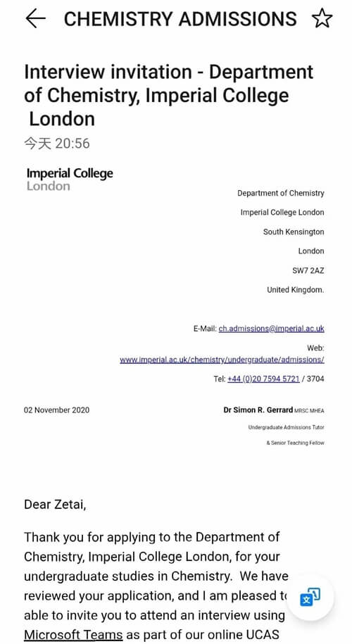 成都牛津国际公学喜报:成都首个帝国理工面试邀请来了!