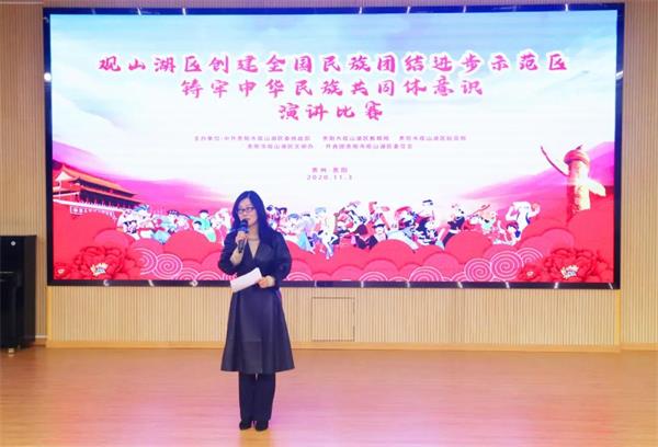 11月3日,观山湖区创建全国民族团结进步示范区、铸牢中华民族共同体意识演讲比赛在观山湖区第七中学举行。全区25个教育集团的中小学校48名选手以“弘扬铸牢中华民族共同体意识”为主题倾心演讲,带领全体观众进一步了解各民族传统文化和民族民俗习惯,提升民族文化素养。经过紧张而激烈的角逐,分别评出了小学组、初中组、高中组一二三等奖及优秀奖。