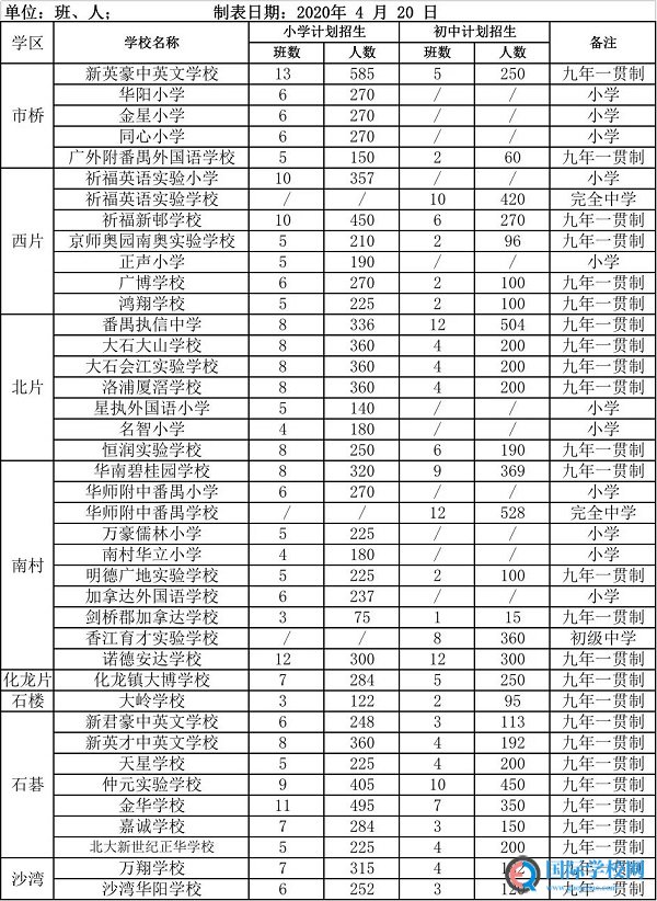(一) 由于各方面情况的调整与变化,本网所提供的【广州各区民办初中2020招生计划汇总】仅供参考,并不意味赞同其观点或证实其内容的真实性,相关信息敬请以权威部门公布的信息为准。