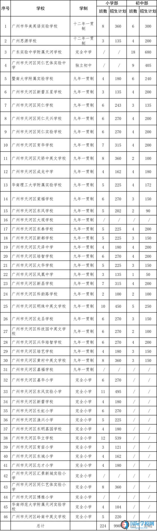 备注:目前,荔湾、南沙、从化和花都暂未公布民办初中招生计划
