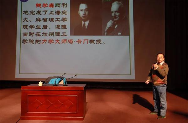 张教授还分享了钱学森在中国科大教书时的有趣往事。例如:钱学森自掏腰包为同学们买计算尺,让力学系的学生延迟半年毕业,采用开卷考试让学生解答火箭发射路径方程的故事,以及钱学森对学生们提出的三严:严格、严谨、严密的学习要求。张教授希望在场的同学们,也能向钱学森学习,严格要求自己,做足准备去应对困难,坚持到底完成挑战。