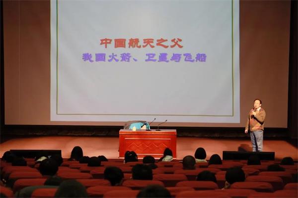 讲座伊始,张教授从恩师钱学森的学习和工作经历谈起,讲述了钱学森艰难的回国历程、严谨的科学精神,以及回国后对我国“两弹一星”研究作出的伟大贡献。张教授告诉同学们,祖国今天的强大离不开钱学森的贡献,也因为钱学森的无私奉献,才让我国的航天军事发展至少提前了二十年。张教授从当今的世界格局谈起,讲述了我国在航天、军事方面的发展历程,讲解了如何从军事弱国走向军事强国,并从航天落后国家走向航天强国的国防发展史。