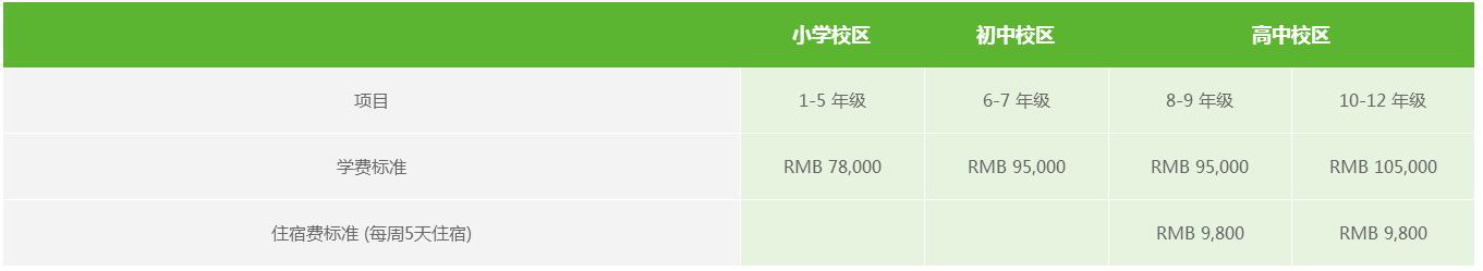 注:学费涵盖与课程相关的费用和教育成本以及所需教学设备费用,还包括教学书本、学习材料、其他供应品、学校活动等费用。