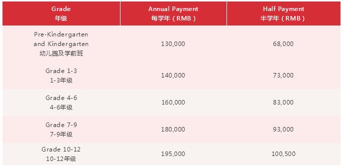 *学费可以一年或半年形式缴纳,在读生兄弟姐妹或CIEO幼儿园毕业生享受学费95折。