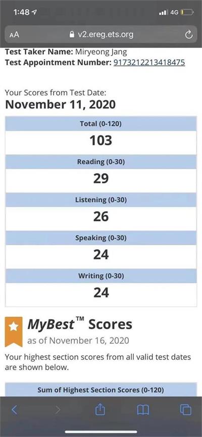 Finally, regarding reading and listening, in my case, the personal condition of the day and the topic of the passages determine the results; however, in the case of reading and listening, I have to study steadily with perseverance and patience, which means you have to practice these parts as many as possible. In terms of the reading part, if you understand the passage well, then you can get pretty satisfying scores without concerns. However, you have to know tons of vocabulary to understand the passage without problems, so try to use the vocabulary frequently to make it yours. For the listening section, my experience in the Philippine helps me to get accustomed to the lecture, so I think the best way to improve the score of the listening section is by having more opportunities for approaching English.