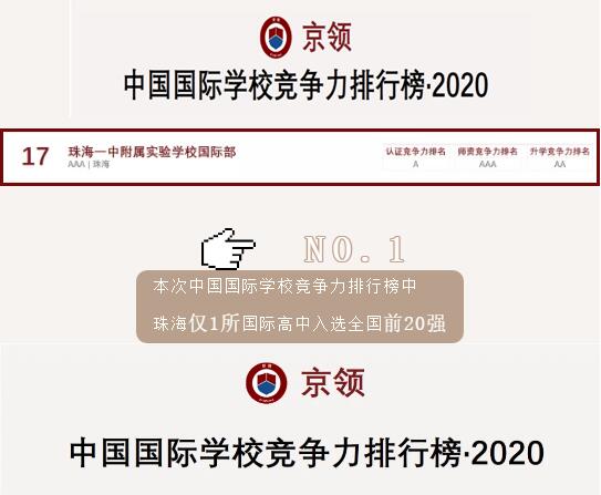 在刚刚出炉的“2020中国国际学校竞争力排行榜”上,珠海一中附属实验学校国际部位列全国第17,全省第6,珠海第1!