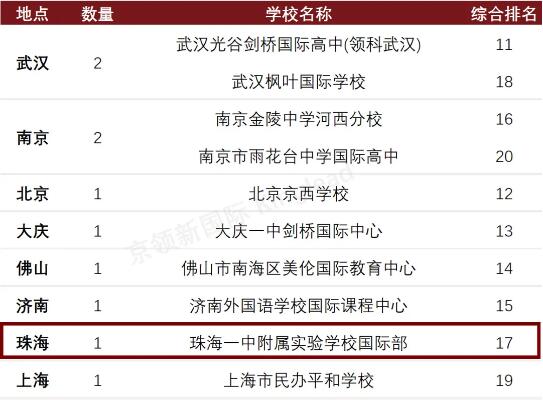 珠海一中附属实验学校国际部是珠海唯一上榜中国前20强的国际高中!