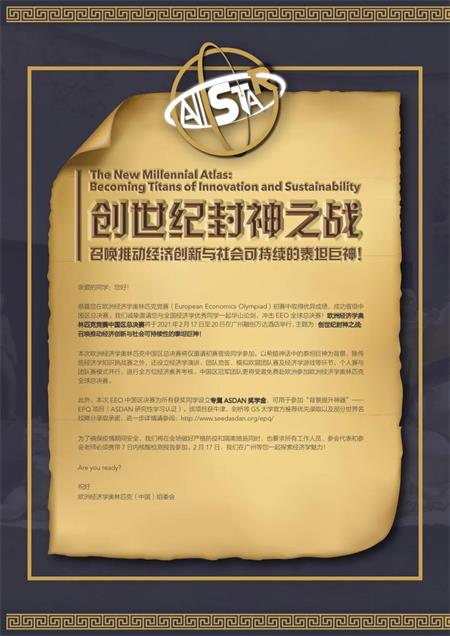 欧洲经济学奥林匹克(EEO)中国赛区总决赛邀请函