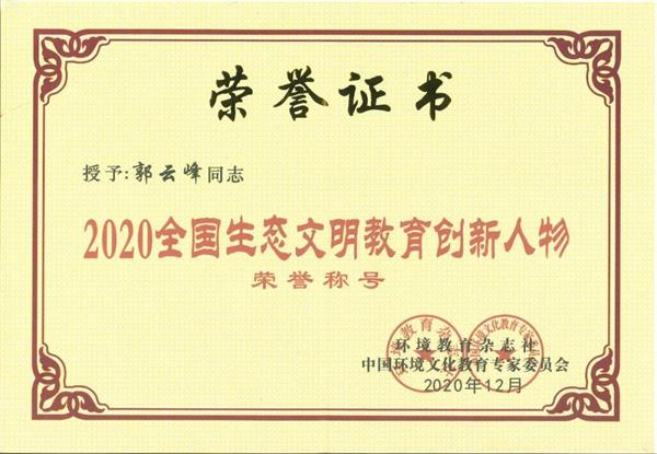 中澳实验学校获评“2020全国生态文明教育特色学校”,中澳郭云峰校长荣获“2020全国生态文明教育创新人物”称号