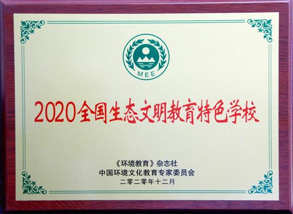在这辞旧迎新之际,深圳市桃源居中澳实验学校获国家级活动认可,荣获重磅荣誉,被中国环境文化教育专家委员会和《环境教育》杂志社评为“2020全国生态文明教育特色学校”并颁发奖牌。同时,中澳实验学校郭云峰校长荣获“2020全国生态文明教育创新人物”称号。