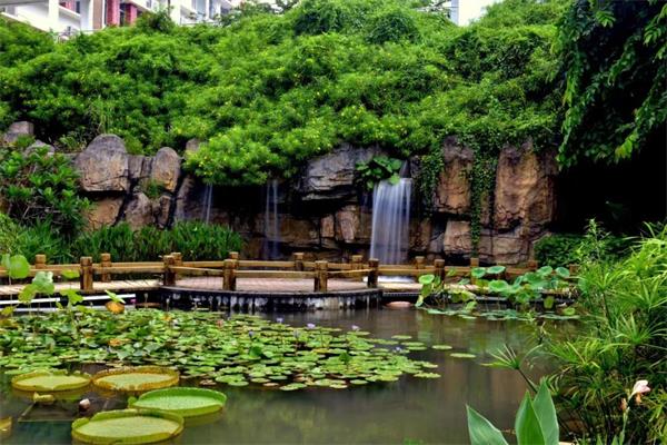 学校植物园占地面积3855平方米,有十大特色主题植物园区,包括陶欣园、静悠谷、碧波池、悦穗园、蝶恋园、绿墙、繁锦园、香果园、丝兰园、翠筱亭。植物园以常绿植物为基底,结合植物特色,增加开花植物,合理搭配植物花期,突出植物景观色彩,达到一年四季有花的视觉效果。