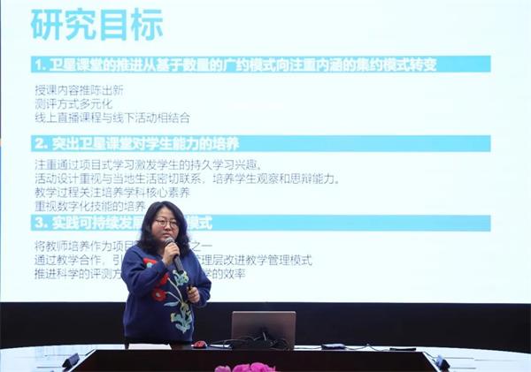 ▲巩宁老师介绍《基于项目式学习的“卫星课堂”设计与实践》项目