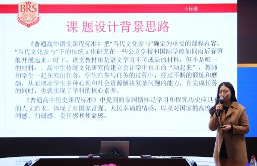 ▲常姣姣老师介绍《国际文凭组织小学项目框架下“京味文化”的项目式课程》项目