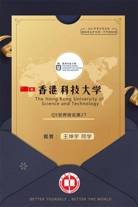 湖南省长沙市第一中学国际部学生获香港科技大学全额奖学金,G5超级精英大学,加拿大UBC,澳洲本科直录!