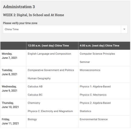 4. 在学校报名参加考试的学生,将不能自己选择参加哪一场考试,由学校的AP管理员进行安排。