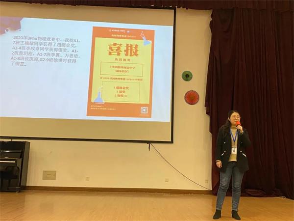 周校还特别分享了我校同学在2020年BPhO物理竞赛中取得的优异成绩,我校A1-7班王楠棣同学获得了超级金奖,A1-4班李成章同学获得了银奖,A1-2班同学黄玥程,A1-7班李翼、万思语,A1-8班侯凯原,G2-9班徐秉时获得铜Ⅱ。BPhO物理竞赛有一定难度,能取得这样的好成绩值得骄傲,特别是G年级的同学。