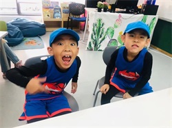 学生们提前商量好,在主题日当天两两组合穿一样的衣服到校。马里奥兄弟组合,篮球兄弟组合,在这一天里,孩子都多了一个兄弟或者姐妹,体验了一次有双胞胎的感觉!