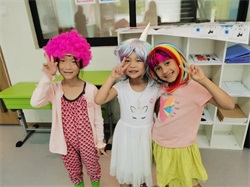 五颜六色的假发出现在了校园里。孩子们那些爆炸头、梦幻独角兽、人鱼公主、红发公主的梦得以实现。