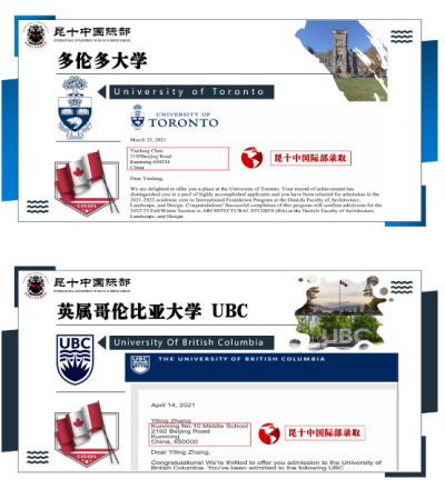 昆十中国际部2021届准毕业生海外名校录取接踵而至,截至4月,昆明市第十中学国际部中加中美高三同学共收到来自加拿大、美国、英国、澳洲、瑞士名校录取。