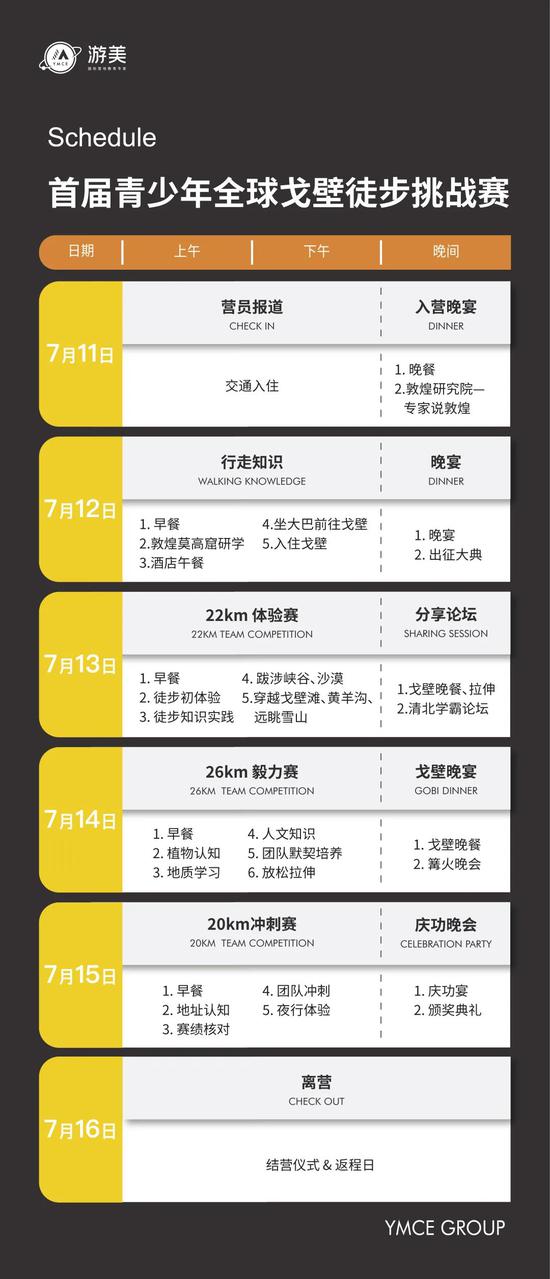 游美营地教育首次正式推出【首届全球青少年戈壁徒步挑战赛】,让戈壁徒步所代表的“理想、行动、坚持”等精神闪耀未来一代。