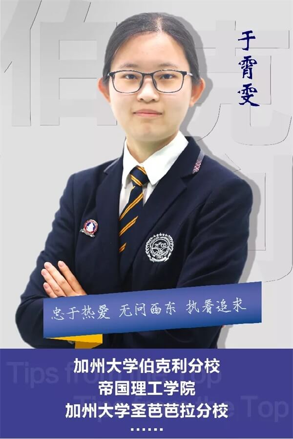 计算机专业,让她闪闪发光。她有严谨清晰的逻辑、全面发散的思维,有超强的专业素养,有知恩反哺的感恩之心,有以己所长服务大众的公民责任感。她就是被美国加州大学伯克利分校计算机专业录取的北京市二十一世纪国际学校毕业生于霄雯。