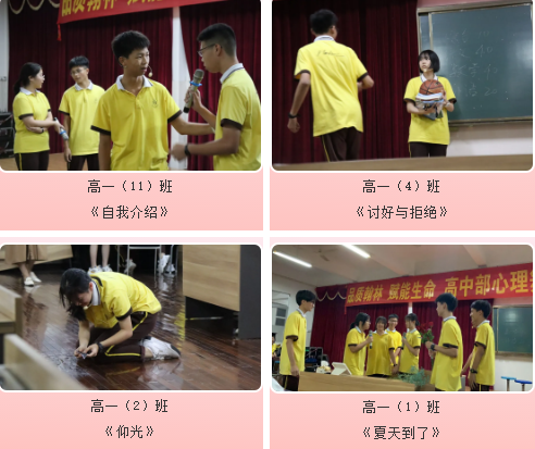 通过剧本评选,初中、高中分别有8个剧目进入了心理舞台剧初赛。结果一公布,参赛班级便紧锣密鼓地筹备:修改剧本、招募演员、磨合排练。学校心理教师也对剧本内容、演员表现、舞台细节等方面提出相应建议并给予指导。
